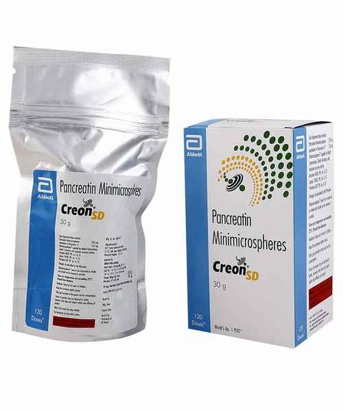 The generic name of Creon SD is Pancreatin 150 mg Granules. Creon SD is used to treat pancreatic enzyme deficiency. It is a pancreatic enzyme supplement that helps in digestion. This medicine also reduces stool frequency and stomach discomfort.