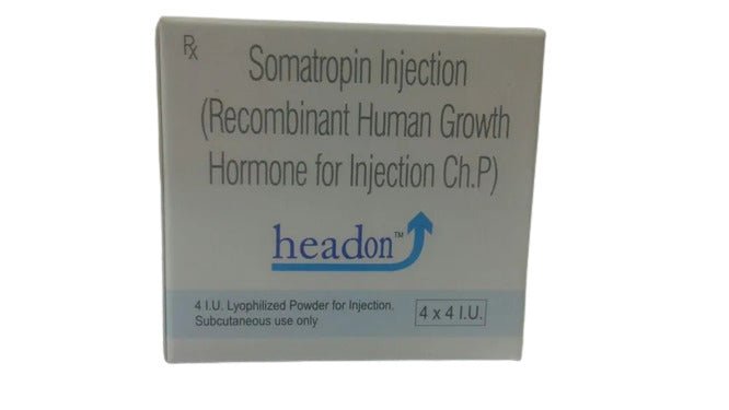 The generic name of Headon Injection is Somatropin 4 IU. Headon 4 iu Injection is known to acts as a replacement for growth hormone, and helps restore normal growth and development of bones and muscles in individuals suffering from growth hormone deficiency.